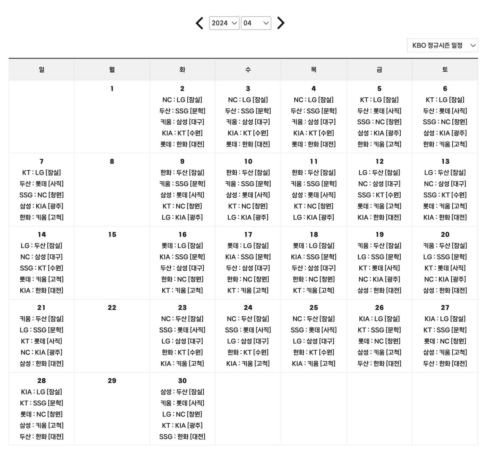 2024 KBO 프로야구 경기일정