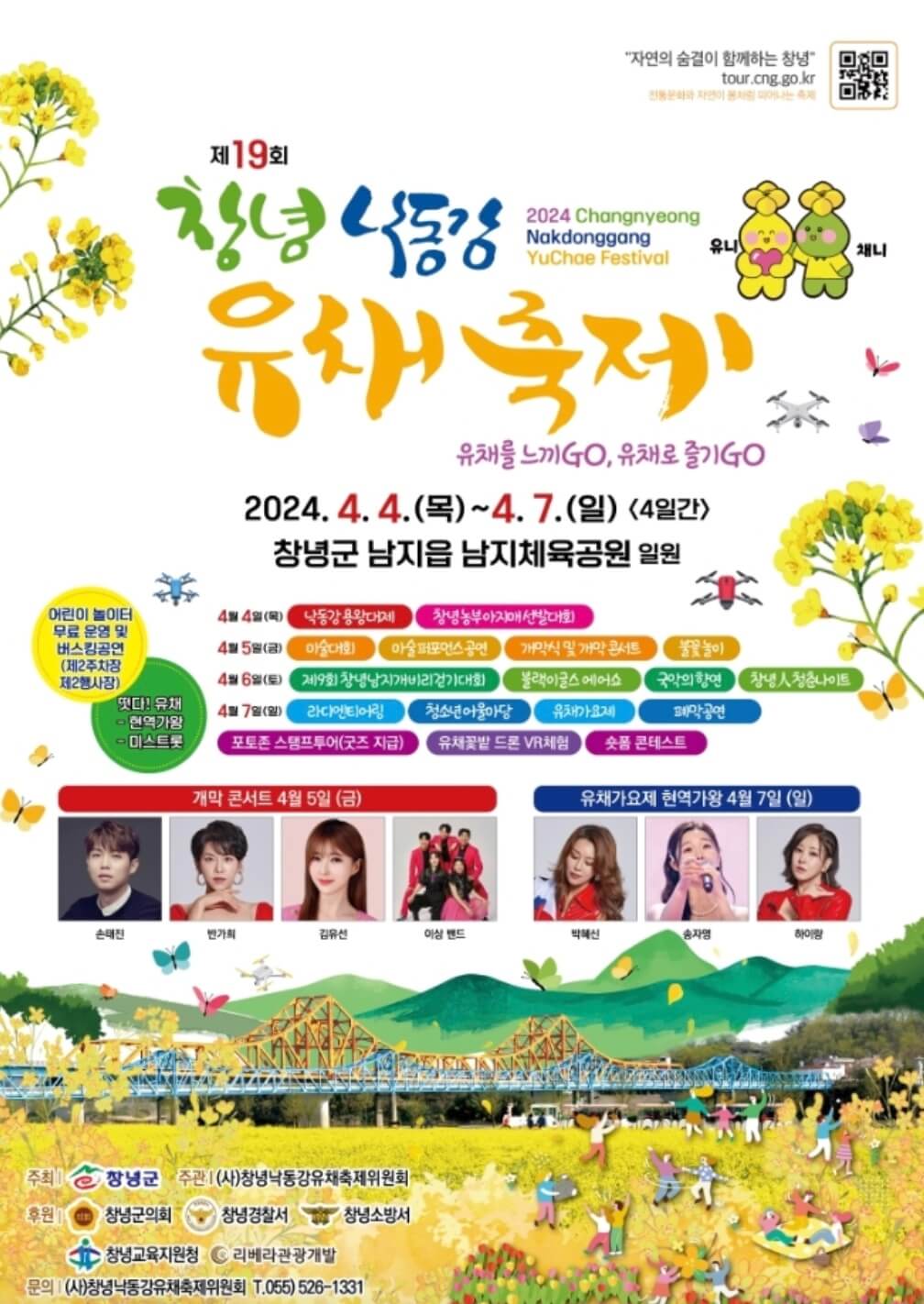 전국 단일면적 최대 규모 약 33만 평의 유채꽃이 어우러진 대한민국 대표 봄꽃축제입니다. 낙동강의 절경과 유채단지의 아름다움을 전국에 알리고 관광객과 지역민이 함께 어울려 즐기는 축제로 2006년부터 현재까지 창녕의 대표축제로 자리매김한 축제입니다.